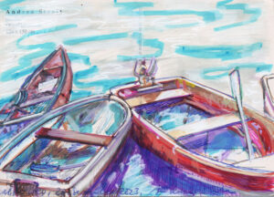 Valentyna Ivanova und ich fahren nach Schwedt (Oder), bauen unsere Arbeiten in der Ausstellung im Kunstverein Schwedt e.V. ab, machen ein kleines Video am Strandbad, leihen Räder, malen am Oderkanal und verbringen einen wunderbar schönen Tag zusammen.